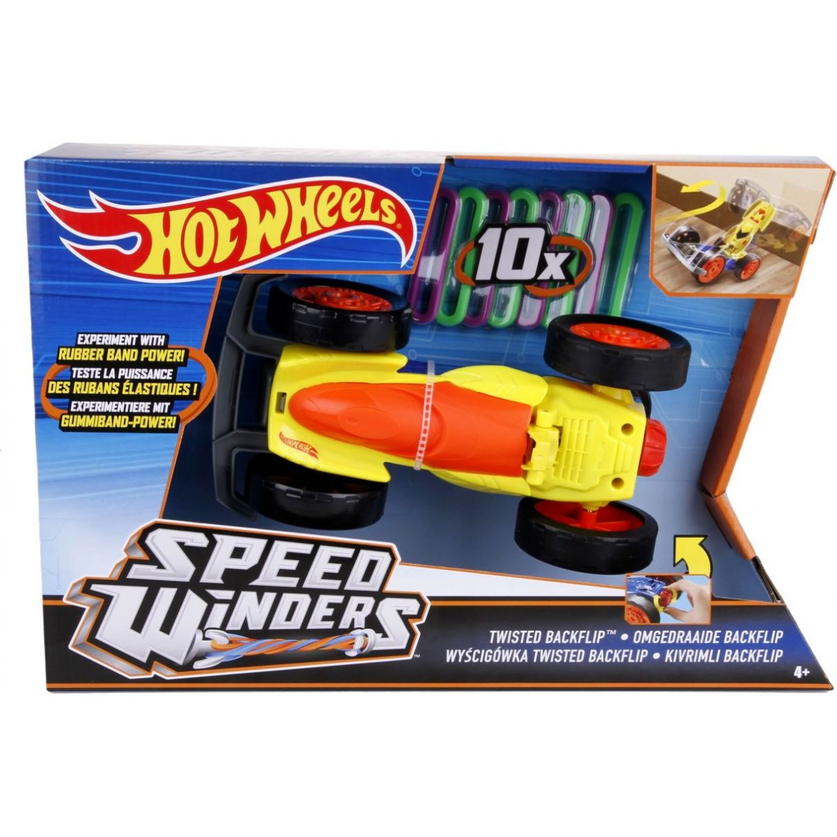 Řada vozidel Speed Winders je celá o vozidlech poháněných gumičkou. Právě k tobě přichází Torque Twister s nepřebernou nabídkou gumiček! Zatoč zadní kličkou a natáhni tak gumičku pohánějící hnací hřídel. Autíčka mají natáčecí kolečka a tak s nimi můžeš divoce driftovat dokolečka, anebo můžeš vyrazit na závod na okruh pro NASCAR závodní speciály. Pokud máš ve své sbírce i motorku Winders Twisted, připoj ji k autíčku obráceně a vytvoř tak famózní spojení obou strojů. Díky vychytaným stylovým háčkům si můžeš své gumičky nechávat přímo na autíčku.