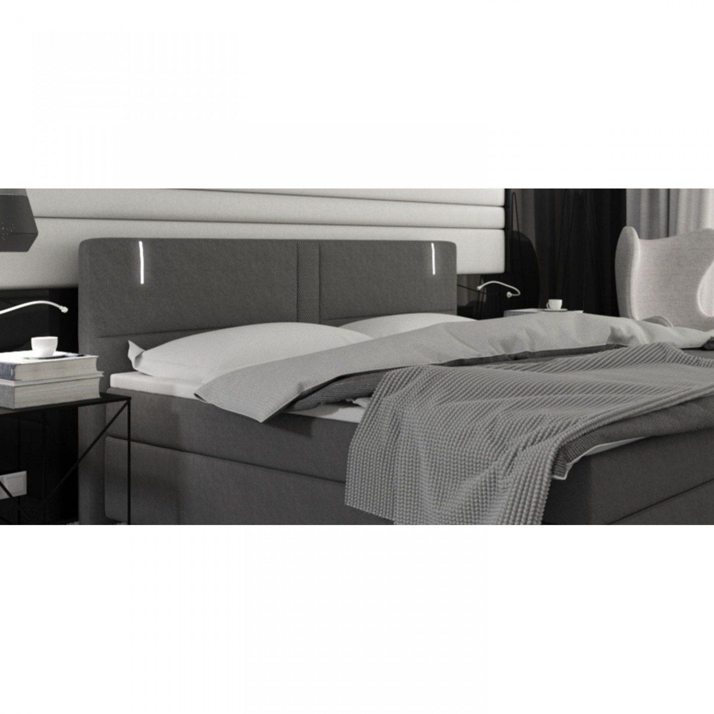 Postel Box Spring Maine s LED osvětlením 180 x 200 cm | šedá