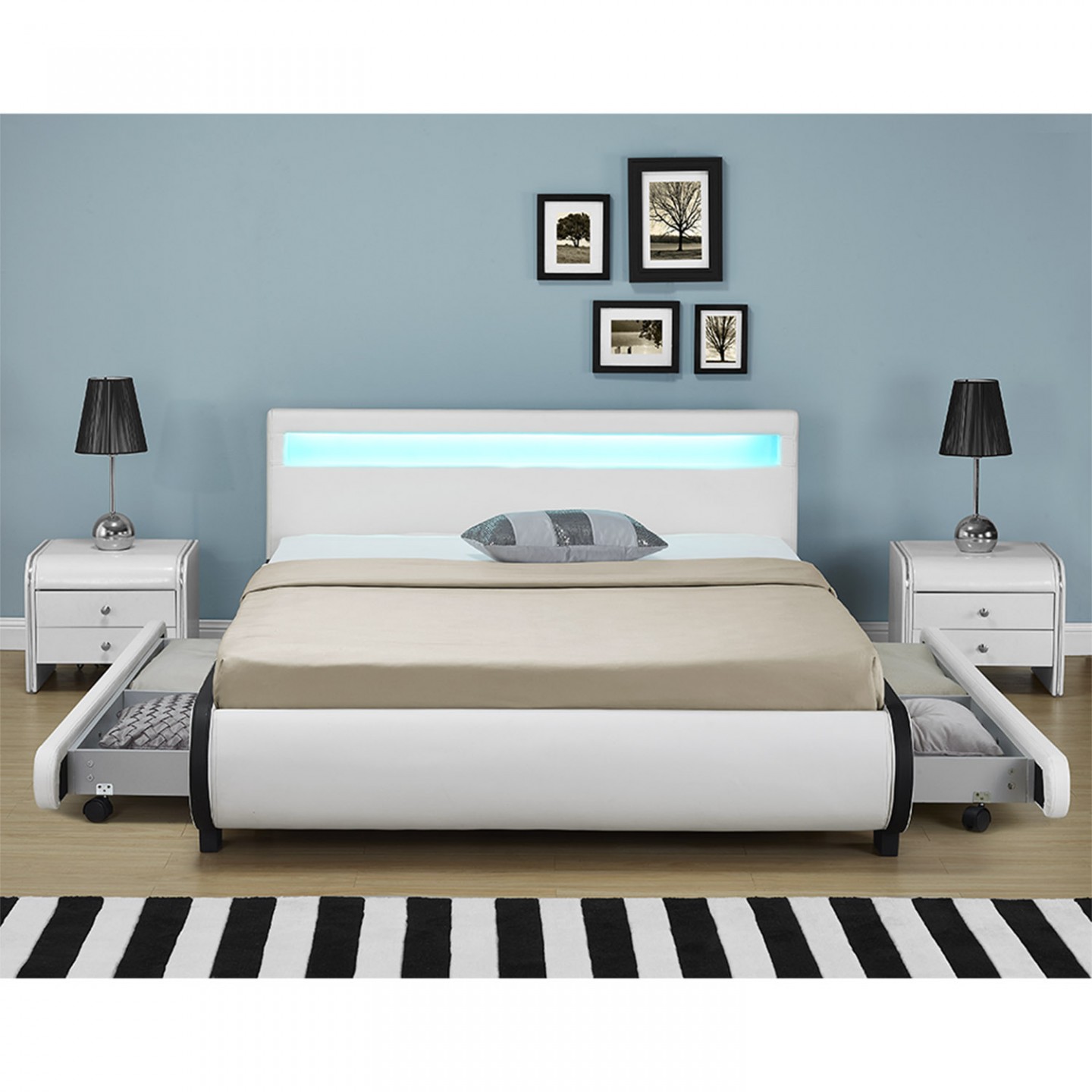 Čalouněná postel Bilbao s úložným prostorem a LED osvětlením 180 x 200 cm | bílá