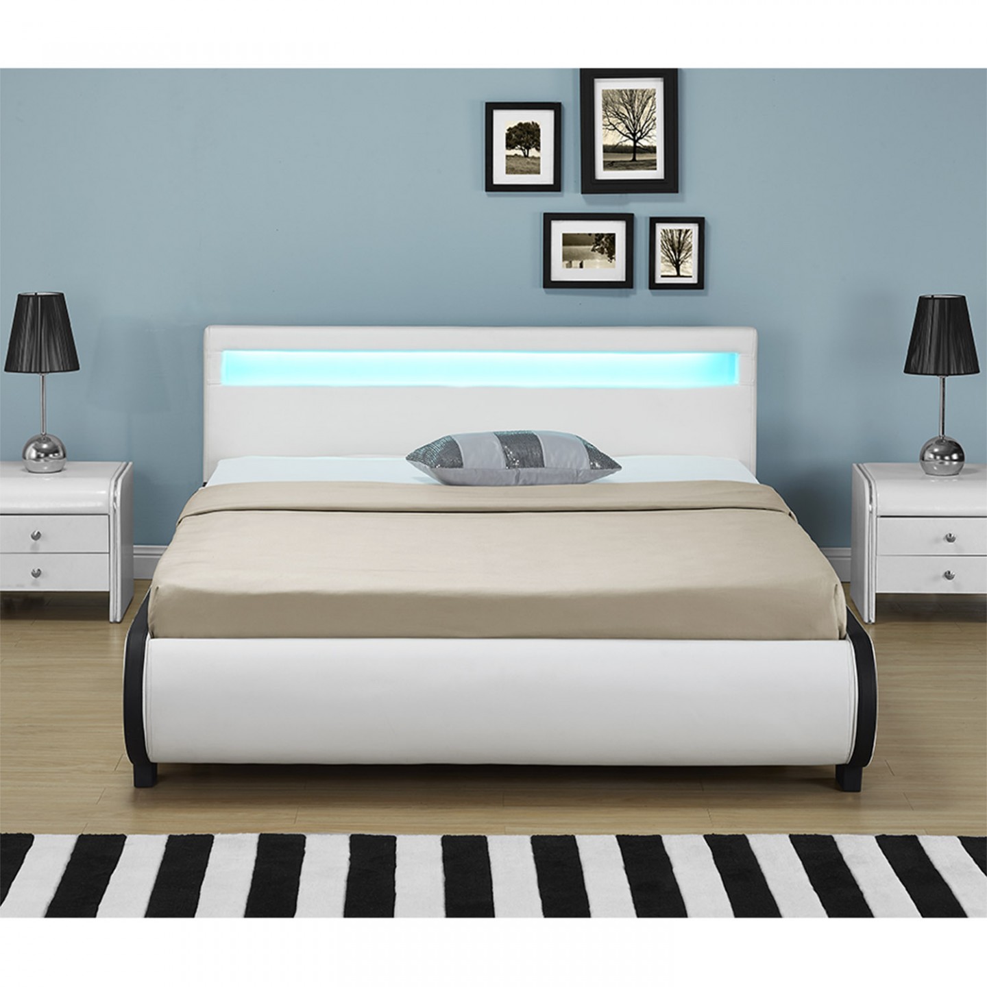 Moderní čalouněná postel s koženkovým čalouněním s jednoduchou péčí Vám připraví sladké sny a klidný spánek. LED osvětlení instalované podél čelního panelu poskytuje příjemné světlo a rozšiřuje do ložnice velmi zvláštní kouzlo. Světlo můžete ovládat dálkově a nastavit jas i barvu podle nálady.