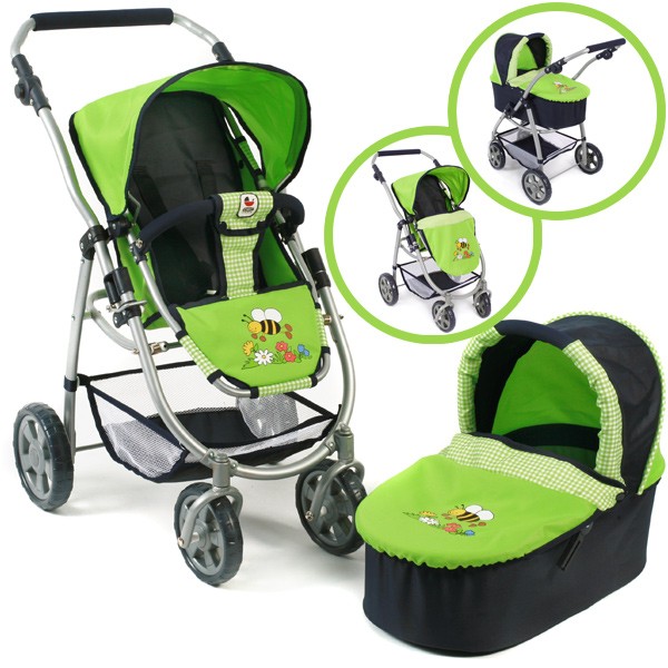 - Moderní kombinovaný kočárek pro panenky - hluboká korba a sportovní sedačka
