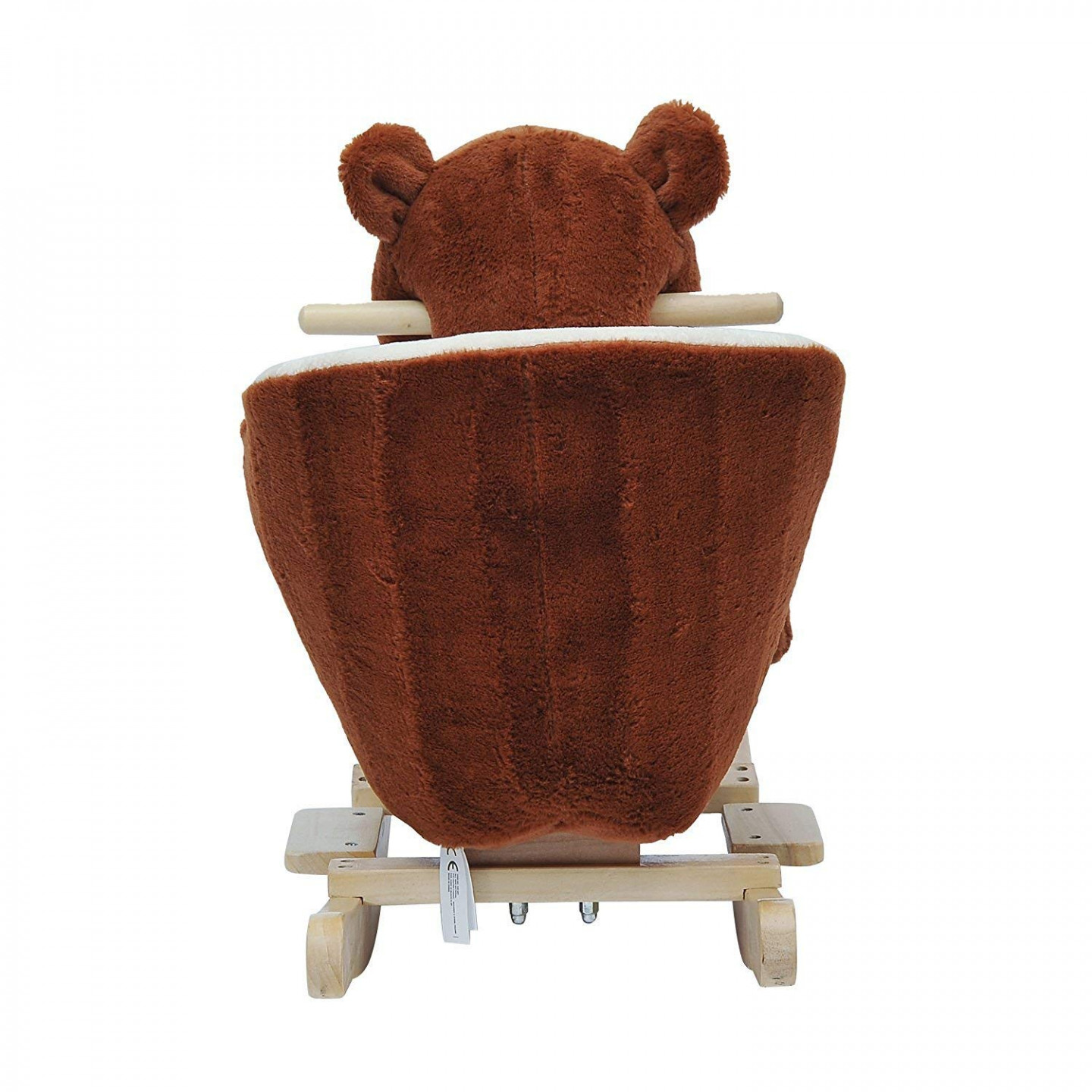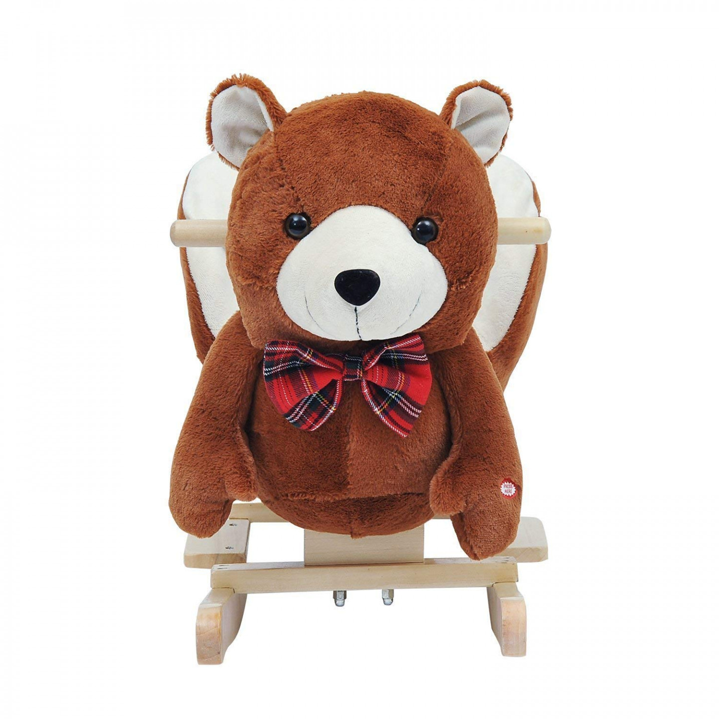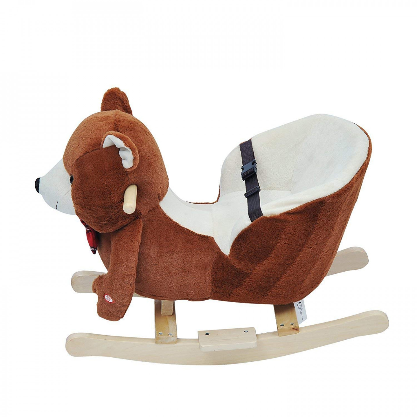 Dřevěná houpačka z kvalitního plyše. Po stisknutí ouška hrají příjemné melodie. Houpání je pro malé děti velmi důležité, stimuluje jejich smysly. Houpací křesílka přinášejí dětem spoustu radosti a zábavy. Houpací lyžiny a úchytky zvířat jsou vyrobeny ze dřeva. V oušku zvířátka je spínač, se kterým se spouštějí příjemné melodie. Sedadlo je ergonomicky tvarované, sezení na něm je bezpečné a pohodlné. K sedadlu je připevněn nastavitelný bezpečnostní pás s rychloupínáním.