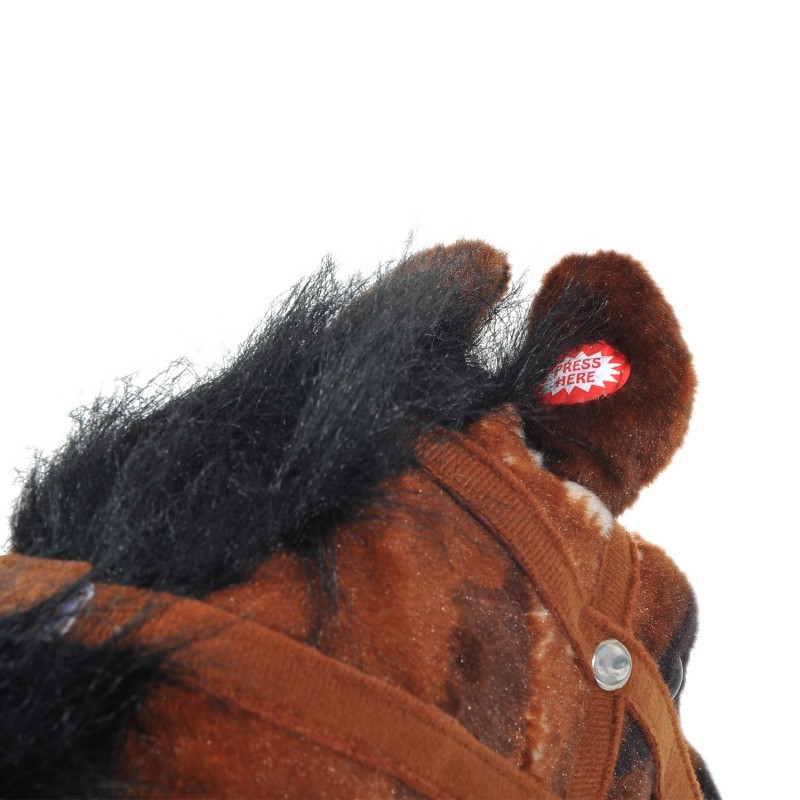 Senzačního plyšového koníka se zvuky si děti doslova zamilují. V sedle se sedí měkce a jistě. Robustní úchopy ze dřeva a třmeny, aby dítě zůstalo pevně sedět v sedle. Kůň má dva různé zvuky, které se aktivují tlačítkem v uchu.Po zmáčknutí spínačů v oušku zazní zvuky řehtání a klusání.