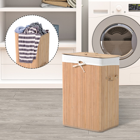 Pěkný a praktický koš Vám pomůže udržet pořádek v domácnosti. Je vyroben z bambusových štěpů a hodí se nejen na špinavé prádlo, ale i na hračky, boty apod. Koš má velký objem, avšak dá snadno složit a uskladnit. Použitý bambusový materiál mu propůjčuje příjemný, přírodní vzhled, a koš se tak bude hezky vyjímat i v předsíni nebo v obývacím pokoji. Vnitřní prostor koše je opatřen vyjímatelným textilním vakem, který jednoduše vytáhnete i s jeho obsahem a v případě znečištění ho vyperete se špinavým prádlem.
