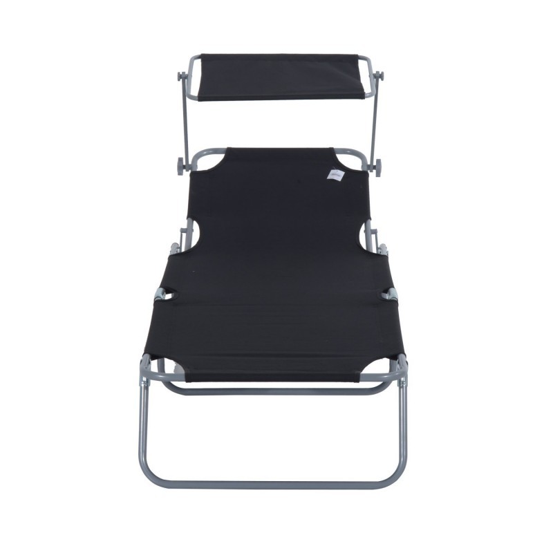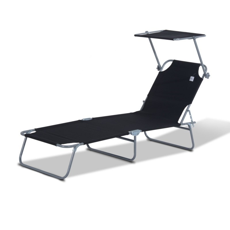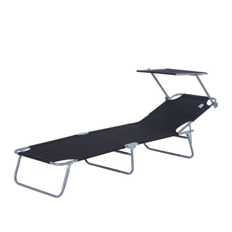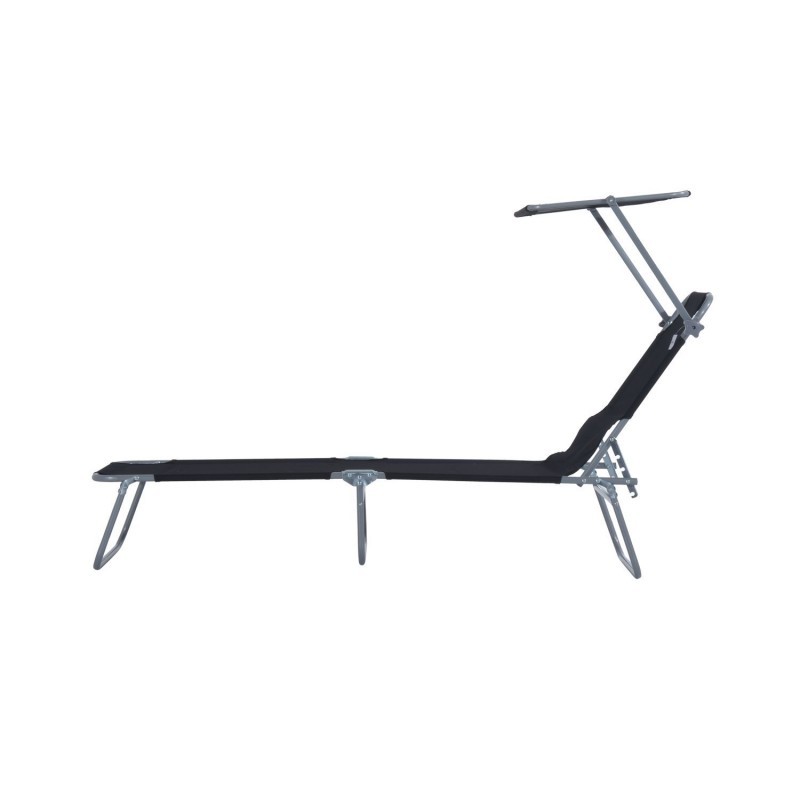 Skládací zahradní lehátko se stínítkem a zpevněnou kovovou konstrukcí, v moderním designu, vhodné pro zahrady, na kempování či na pláž. Opěrku zad nastavit do 4 různých poloh a nastavení stříšky je libovolně polohovací dle potřeby. Na lehátku se sluneční clonou lze odpočívat i při ostrém sluníčku, neboť zabudovaná stříška Váš obličej dokonale ochrání před prudkým sluncem. Křeslo je odolné vůči povětrnostním a klimatickým vlivům, je nenáročné na údržbu a snadno se skladuje.