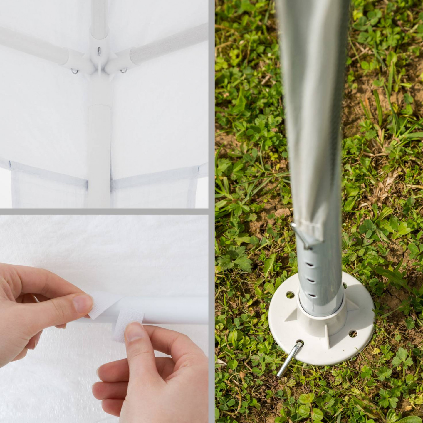 Tento zahradní altán je ideálním pomocníkem při pořádání Vaší zahradní party, večírku nebo grilování na zahradě či chatě. Dostatečně Vás ochrání před slunečními paprsky a mírnou vlhkostí. Za tímto účelem byl navržen a vyroben. Sestavený altán je velice lehký a dá se snadno přenést na zvolené místo. Vzhledem k nízké váze zahradního pavilonu je potřeba celou konstrukci ukotvit pomocí kolíků a lanka a tak zajistit stan proti větru.
