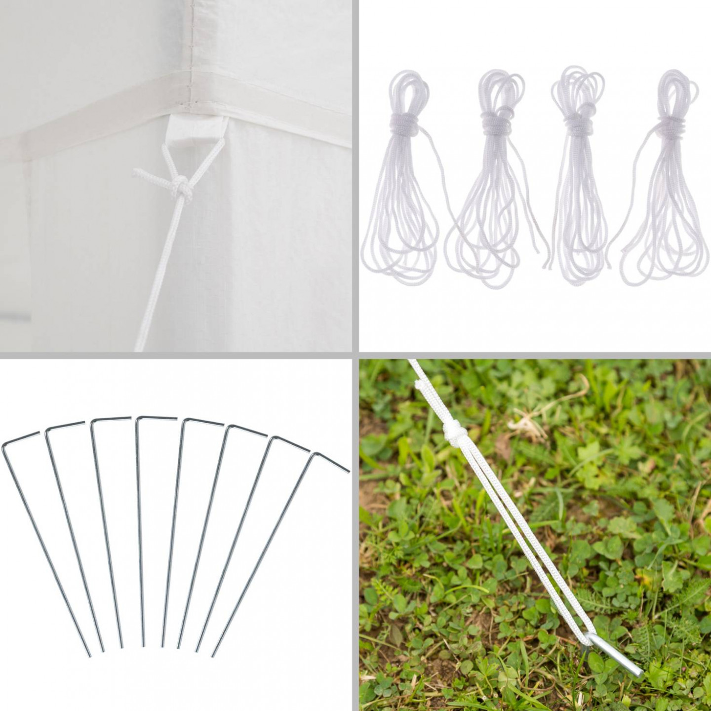 - Upevnění k zemi pomocí kolíků a provazů (součástí balení)