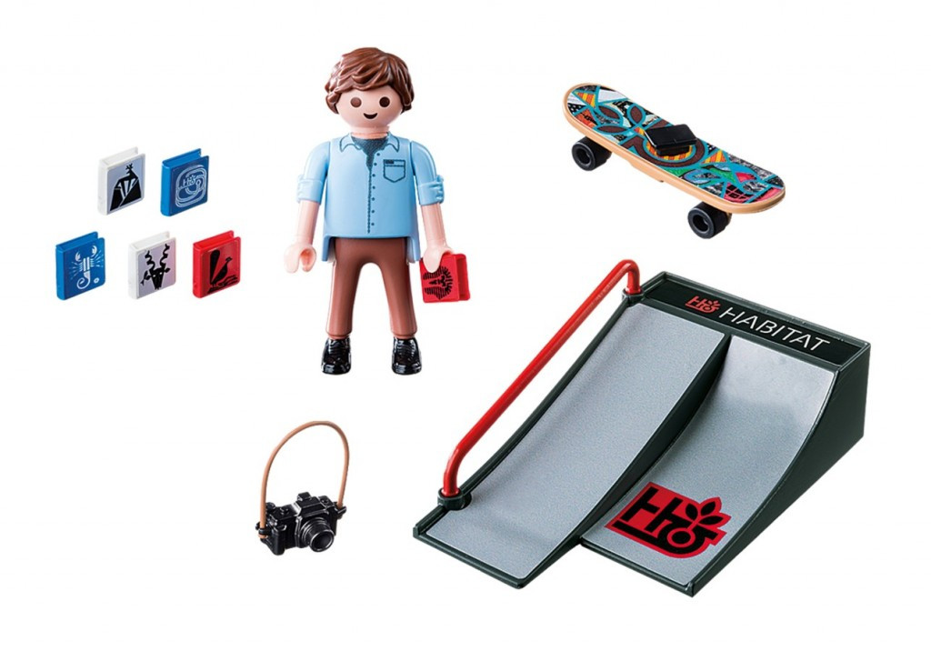 Kluk se skateboardem předvádí na rampě nejlepší kousky.