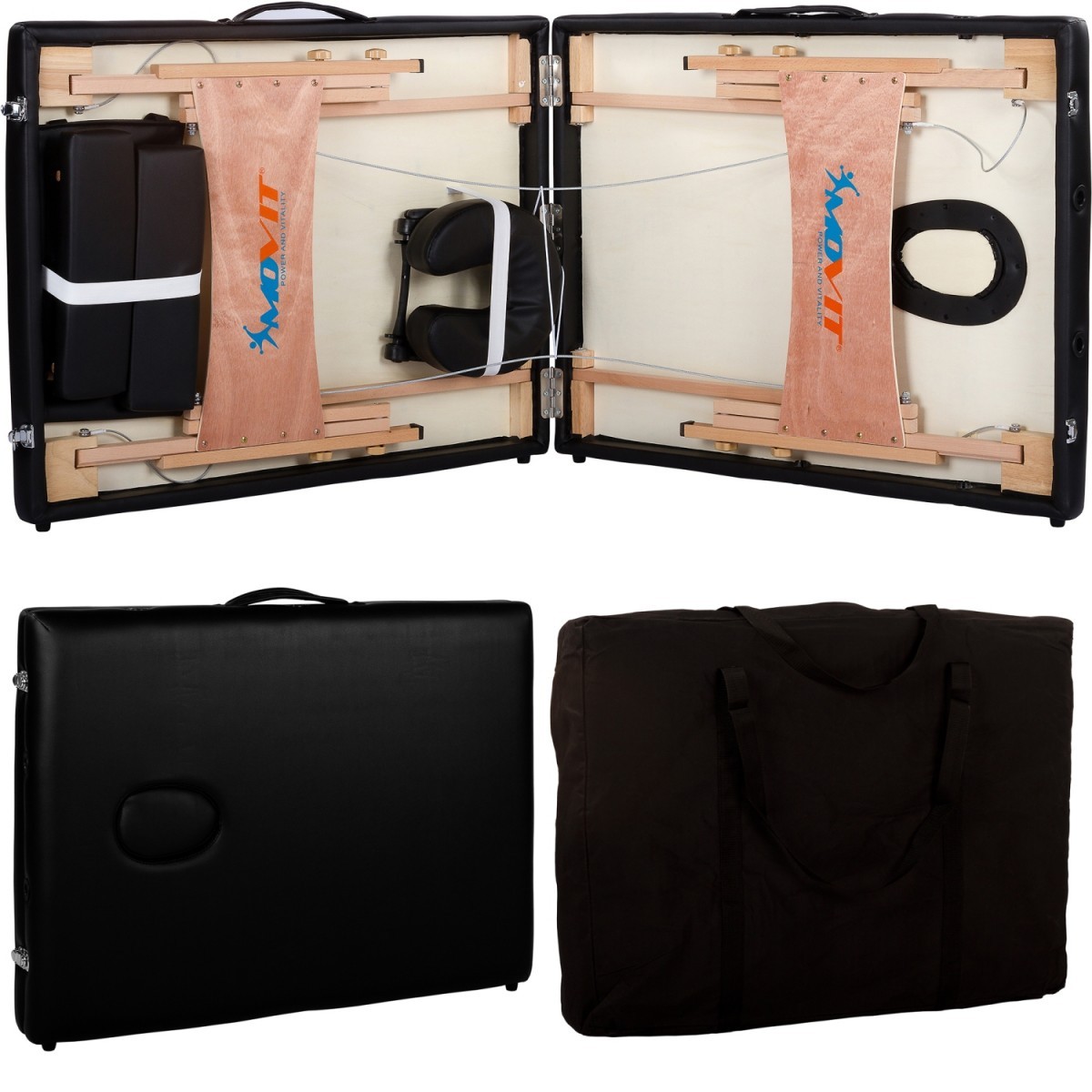 Velice pohodlný přenosný masážní stůl MOVIT® s opěrkou hlavy, otvorem na obličej a loketními opěrkami. Masážní lehátko je vybaveno praktickým skládacím systémem, který umožňuje rychlé rozložení a složení během několika sekund a vyznačuje se vysokou stabilitou, bezpečnosti a komfortem. Stabilní robustní rám je vyroben z bukového dřeva. Lehátko lze jednoduše omýt. Lehátko je snadno přenosné pomocí přenosné tašky, která je již zahrnuta v ceně.