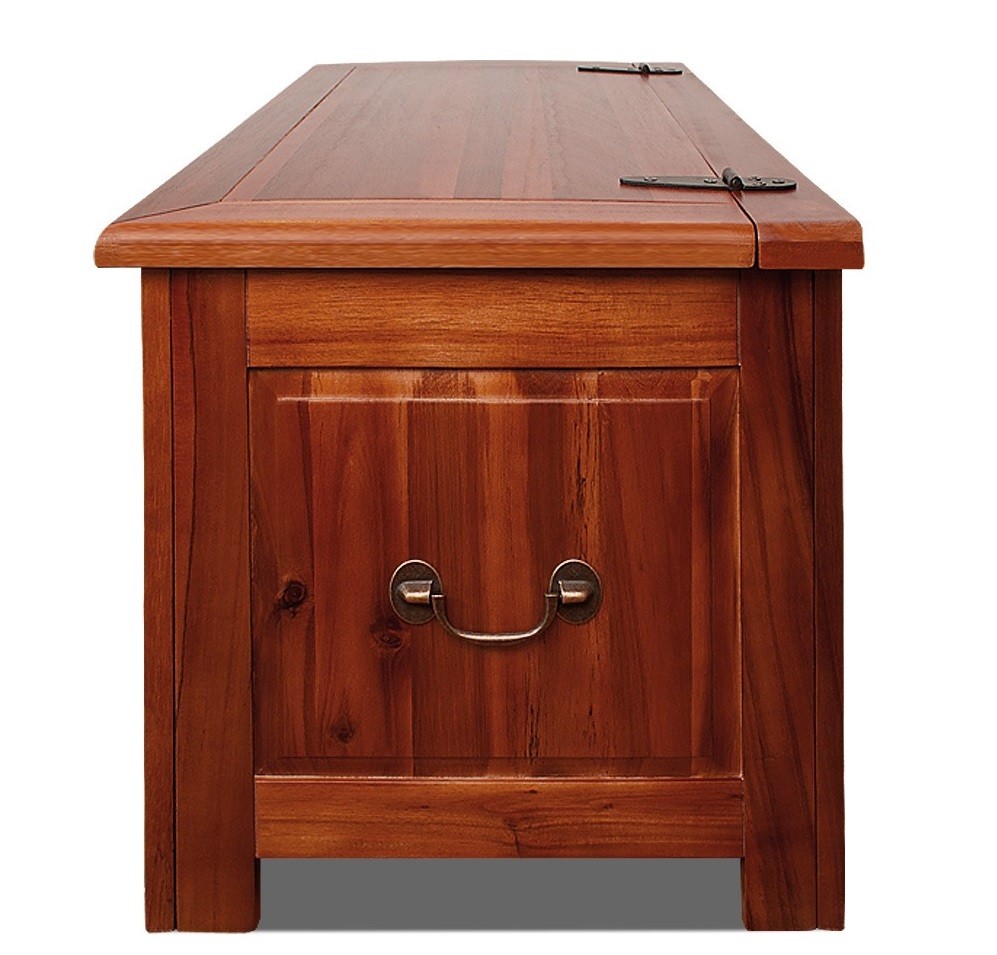 Velká stylová truhla z akátového dřeva poskytuje dostatek úložného prostoru. Víko truhly jde snadno otevřít díky plynovému pístu. Boční madla pro snadné uchopení.
