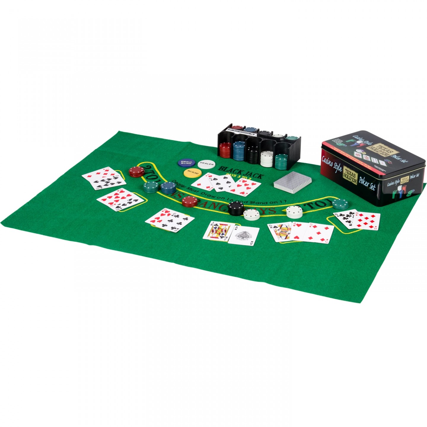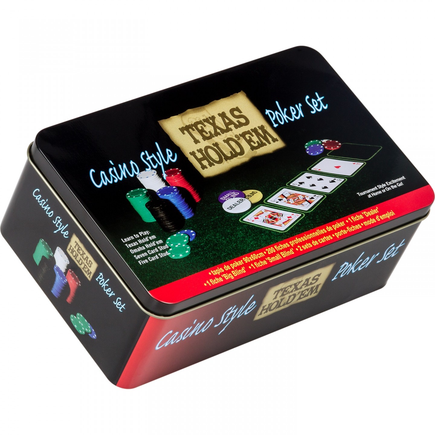 Jednoduchý klasický pokerový set s 200 žetony s moderním designem. Set je ideální pro domácí přátelskou partičku pokeru. Celý set je umístěn v odolné kovové krabičce s potiskem. Set obsahuje vše, co potřebujete pro domácí hraní.