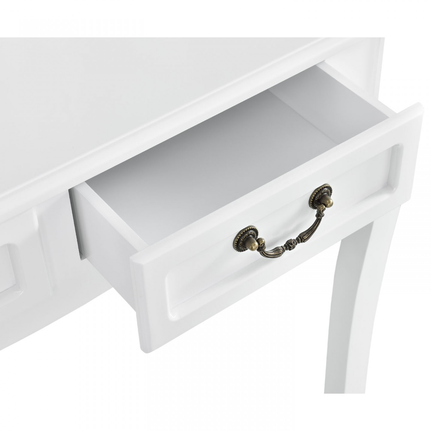 Praktické a originální doplnění interiéru každé ložnice. Vytvořte si místo pro Váš každodenní zkrášlovací rituál! Díky tomuto pohádkovému toaletnímu stolku ve stylu vintage se budete cítit jako princezna nebo rovnou královna. Najděte všem svým kosmetickým vychytávkám, parfémům, hřebenům a šperkům nový domov v tomto nádherném stolku se zrcadly a čtyřmi zásuvkami. Získejte ve svých věcech přehled a pořádek a zejména místo, které bude patřit pouze Vám! Protože každá dáma potřebuje chvilku pro sebe. Už žádné dělení se o místo v koupelně s dalšími členy domácnosti - v praktickém toaletním stolku najdete skvělého pomocníka s úložným prostorem, zrcadlem a pohodlným taburetem.