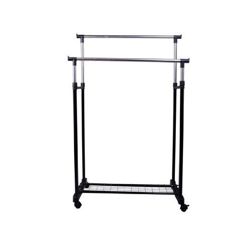 Nastavitelný stojan na oblečení s kolečky kovový | černý
