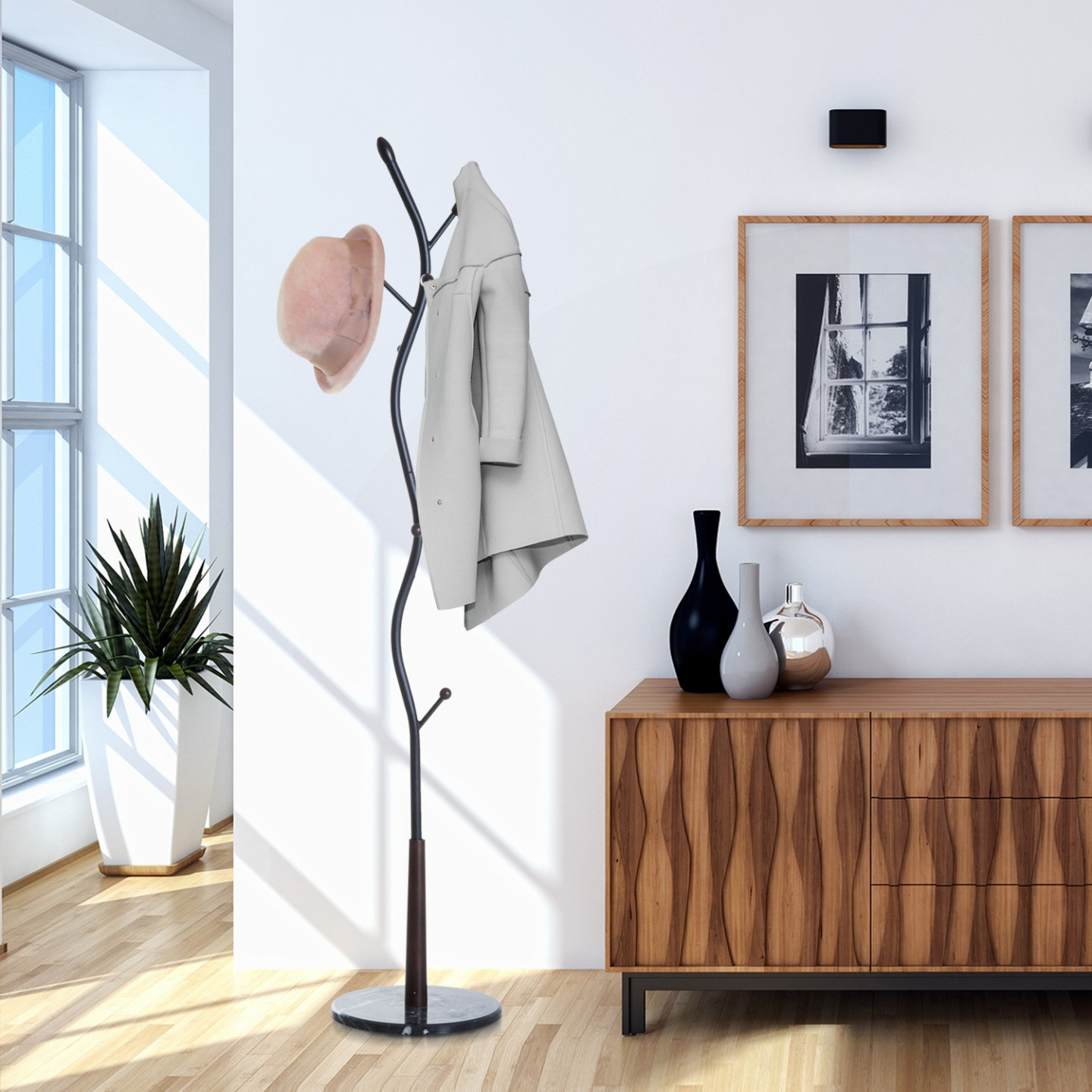 Tento věšák s klasickým designem přidá dotek stylu do vaší chodby nebo v obývacím pokoji. S tímto funkčním předmětem s kuličkovými háčky budete mít vždy místo pro zavěšení oblečení a osobní doplňky. Vyrobený z vysoce kvalitních materiálů. Přenosný věšák je určen k dlouhodobému užívání.