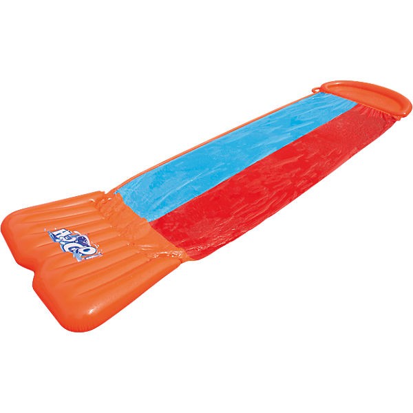 Báječný letní hit! Jednoduše připojíte na zahradní hadici a z mnoha otvorů začne stříkat voda na skluzavku a udržuje ji hezky kluzkou. Skluzavka je ukončena záchytným bazénkem.