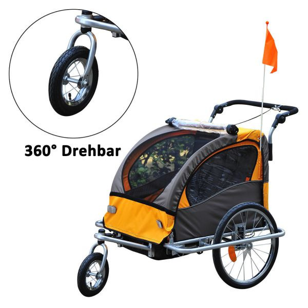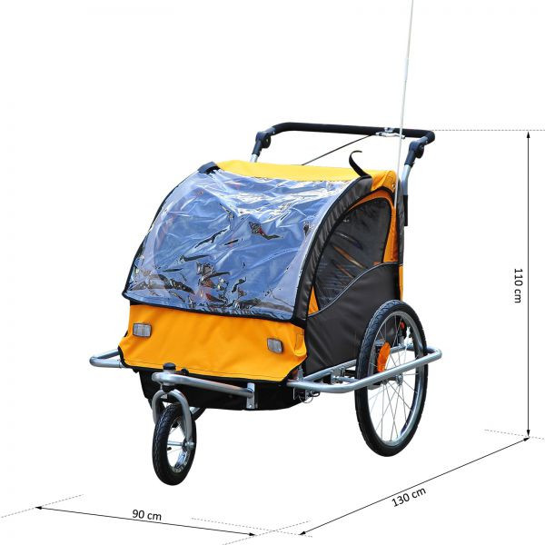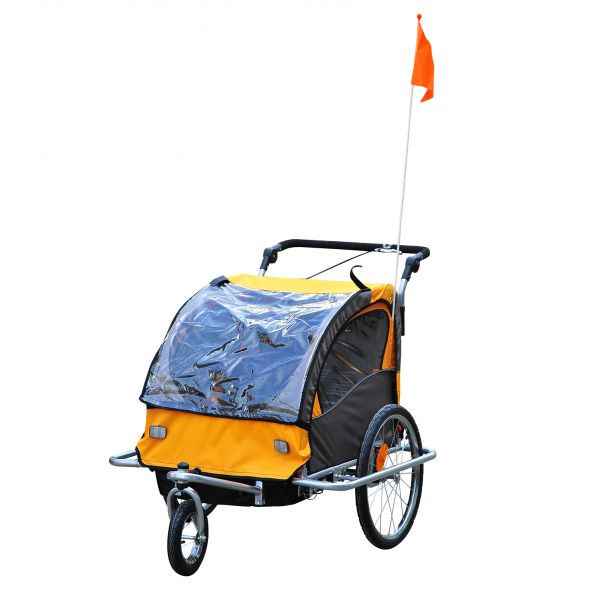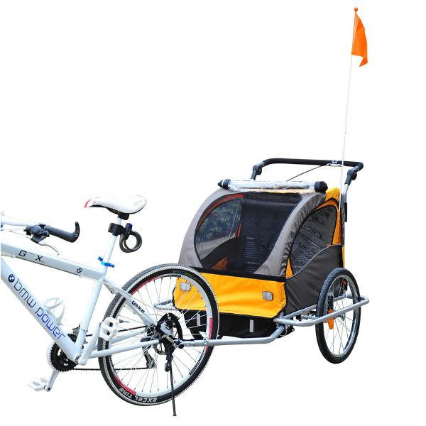 Přívěsný dětský vozík za kolo pro 2 děti Jogger 2v1 | oranžovo - hnědý