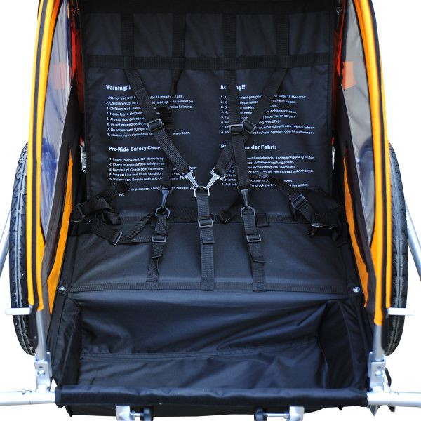 Velmi funkční cyklistický vozík pro dítě s úložným prostorem. Jestliže dáváte raději přednost kolečkovým bruslím nebo běhu, je možno jednoduše sklopit přední přídavné kolečko a rázem máte z vozíku za kolo trojkolku. Je snadno složitelný a složený nezabere mnoho místa. Tlumiče na kolech zajišťují komfort při jízdě. Vyroben z kvalitních impregnovaných materiálů.
