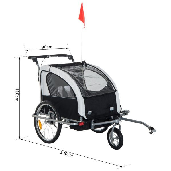 Přívěsný dětský vozík za kolo pro 2 děti Jogger 2v1 | šedo - bílý