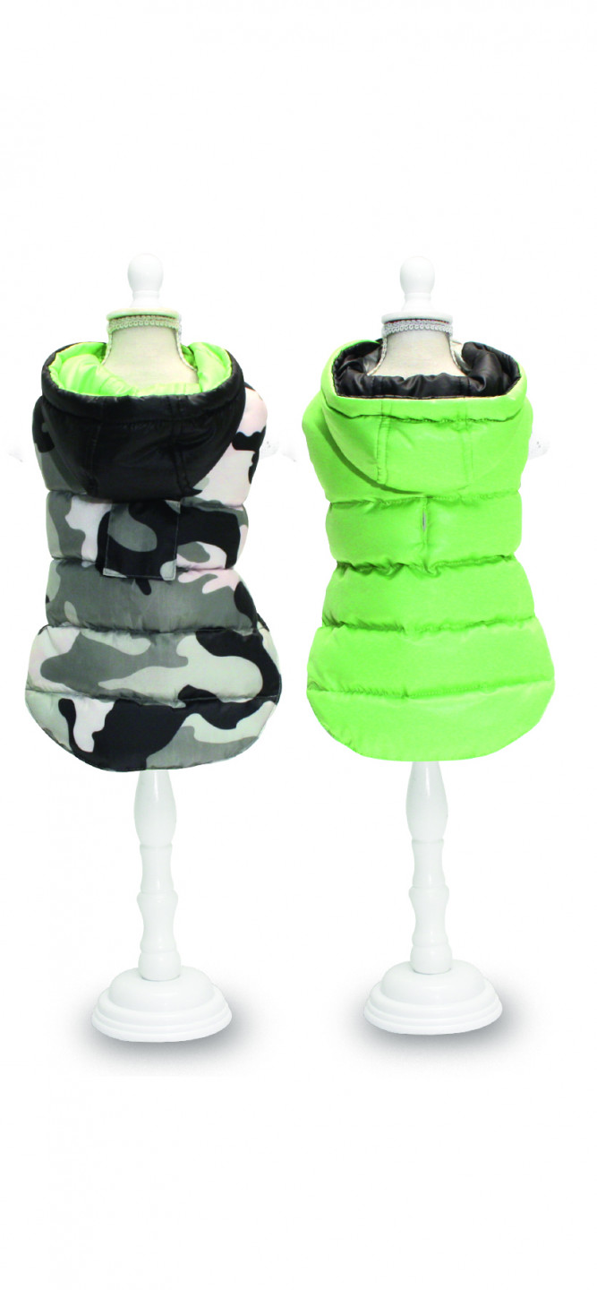 Obleček pro pejska do chladného počasí. Lze užít obě strany bundy, prošívaná, lehká, komfortní.